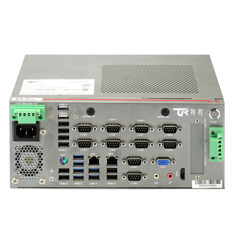接口豐富 : 2*LAN, 10*COM, 20*USB, 1*PS/2, 1*遠 程 開(kāi) 關(guān) , 1*4PIN鳳 凰 端 子 供 電 , 1*VGA, 1*HDMI, 1*4PIN 遠程開(kāi)關(guān)1*SIM槽 , 1*LINE OUT, 1*MIC, 2*2.5寸 硬 盤(pán) 位 , 1*M.2( 2230, PCIE+USB2信 號 , 支 持 1*4PIN 鳳凰端子供電(+12V/+5V)WiFi/BT/4G),1*PCIE X16